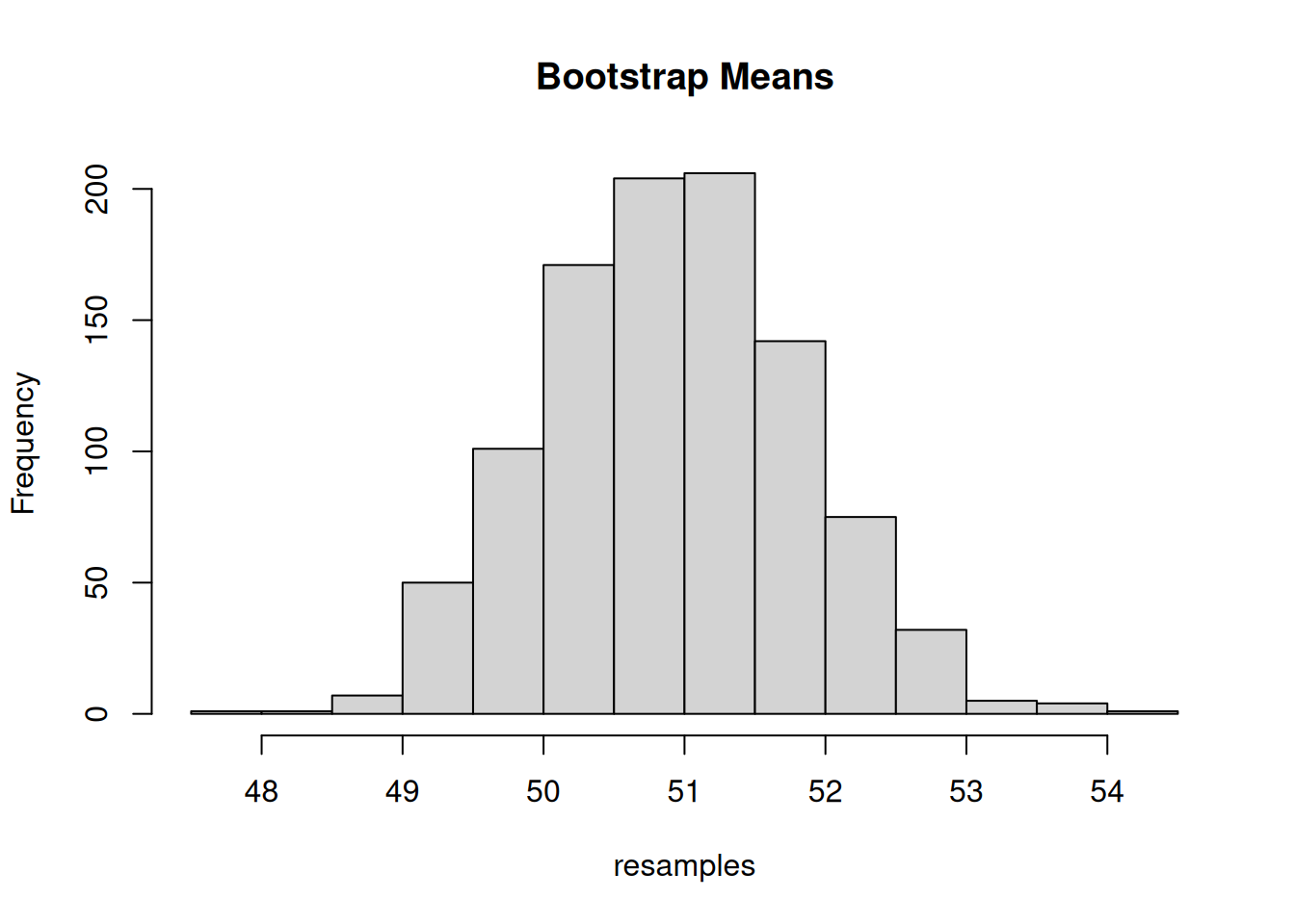 hist(resamples, main = "Bootstrap Means")