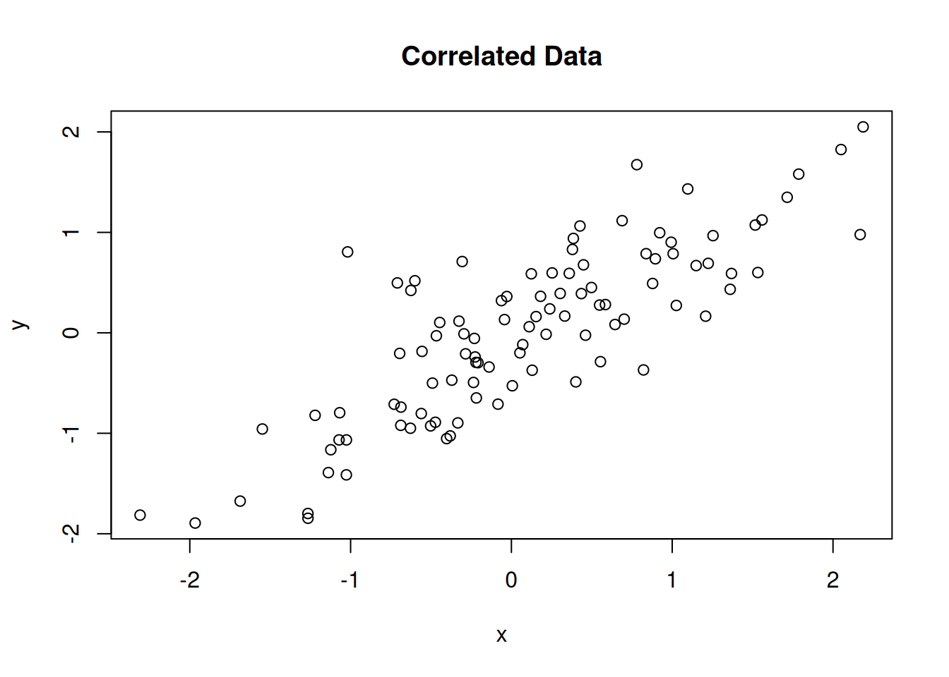 plot(x, y, main = "Correlated Data")